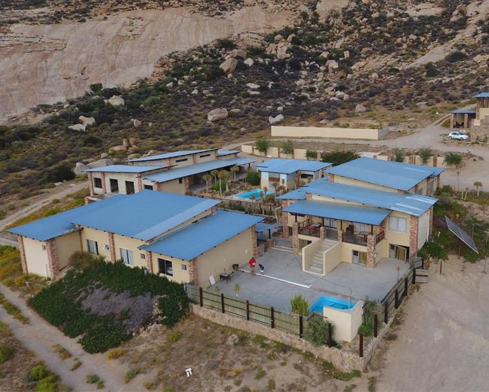 It is situated in the foothills of the granite heads of the Kamiesberg , where quiver trees lookout across the valley and Klipspringers roam. Jakkalswater is entirely “off the grid” and green.