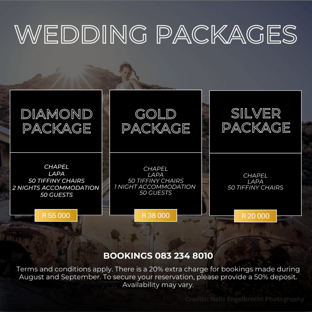 Set against the rugged beauty of Namaqualand, Jakkalswater Guest Farm offers an unforgettable setting for your dream wedding. Whether you’re planning an intimate ceremony or a grand celebration, our venue blends natural elegance with authentic charm to make your special day truly magical.